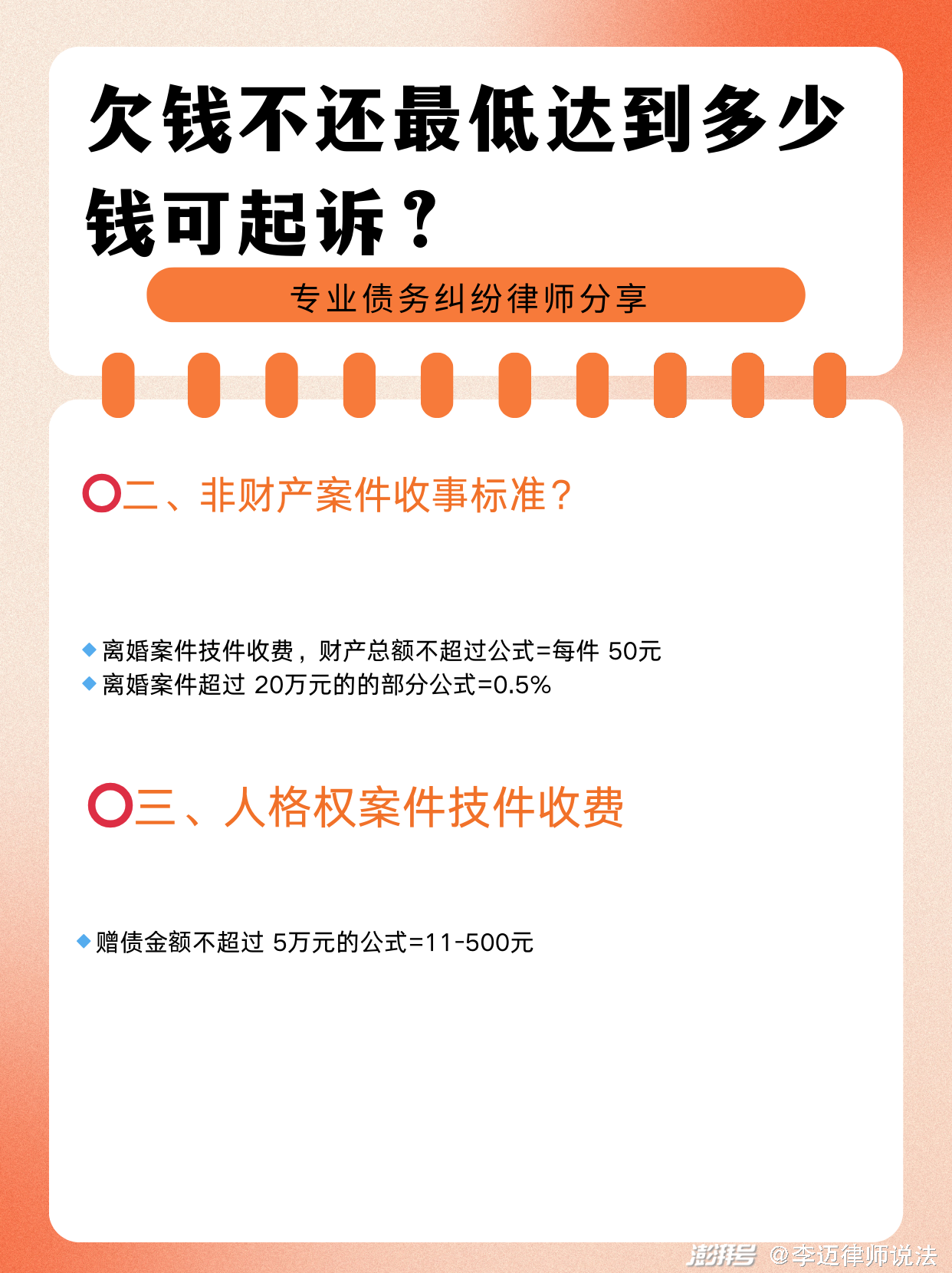 ⭕️人格权案件技件收费,赠债金额不超过 5万元的公式=11-500元