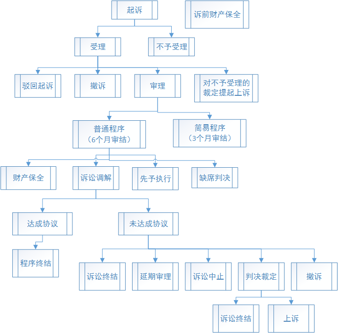 起诉法院的选择诉讼费的交纳起诉所需材料诉讼流程图