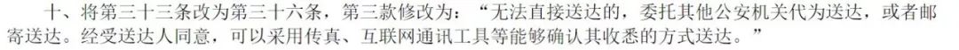 第二,送达方式变化。如果送达人同意,以后就可以通过微信送达了。这个太重要的,大大节省了民警的工作量。