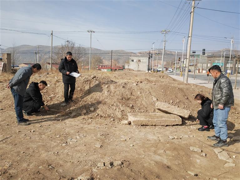 兴隆法庭法官与当事人在纠纷现场拉尺测算。