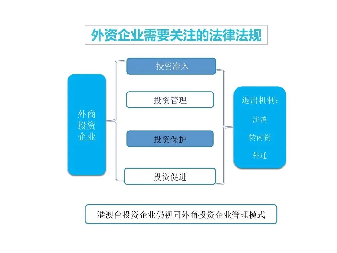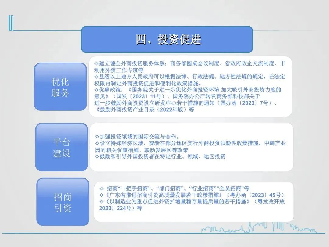 惠州市商务局外资管理科科长周雪峰就外商投资需关注的法律法规进行了介绍。投资准入方面,《外商投资法》明确我国外商投资实施准入前国民待遇加负面清单管理制度,企业重点关注《市场准入负面清单》和《外商投资准入负面清单》,负面清单以外的行业从业者享受国民待遇,可在市场监督管理部门办理登记手续。投资管理方面,准入后按照内外资一致原则管理,企业需执行《外商投资信息报告办法》及外商投资统计调查制度,遵守经营者集中审查和外商投资安全审查制度。投资保护方面,广东制定首部外商投资权益保护地方性法规《广东省外商投资权益保护条例》,突出平等保护、营造公平竞争环境、健全知识产权保护机制、加强政府管理和自我约束。投资促进方面,省市建立健全外商投资服务体系,打造重点平台,推动招商引资高质量发展。