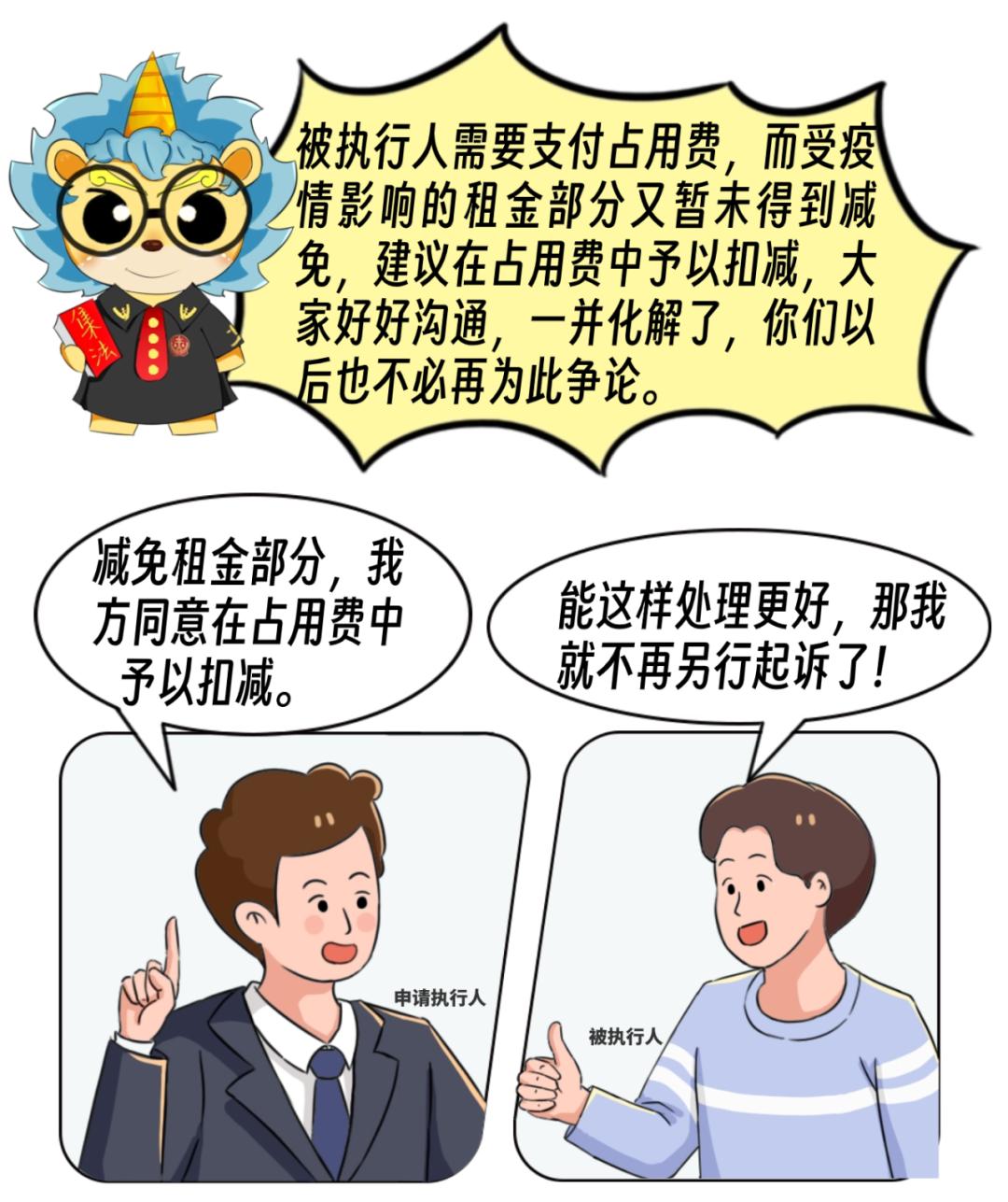 同时,被执行人认为申请执行人并未足额落实疫情影响减免租金政策,占用费中理应扣除其应享有的可减免租金,己方仅需按照正常租金即每月24万余元的标准支付占用费。