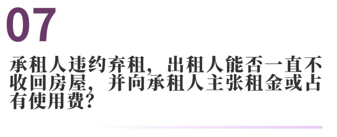 即便承租人是在不享有法定或约定解除权的情况下违约弃租,但在承租人已不实际占有租赁房屋时,出租人亦负有减损义务,应当采取适当措施防止损失的扩大,即及时解除租赁合同并收回租赁房屋。否则,出租人不得就扩大的损失请求赔偿,也就是说,并不是只要出租人不解除租赁合同,就可以一直计取租金或占有使用费。法院将结合租赁合同履行情况、出租人的减损义务、承租人的过错等,对合同解除时间作出认定,并确定出租人应收回房屋的合理时点及承租人支付占有使用费的截止时间。