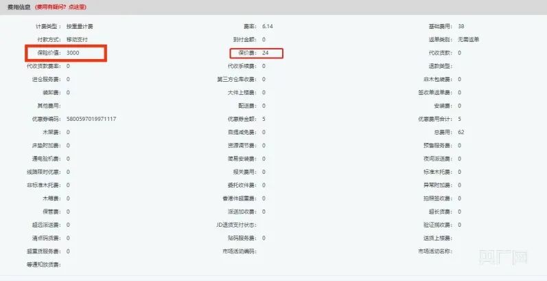 田先生提供的快递单显示,快递物品保险价值3000元,保价费24元,基础费用38元。