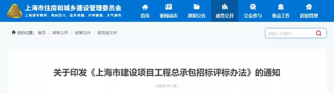 据上海市住房和城乡建设管理委会官网消息,为进一步规范上海市工程总承包招标评标活动,根据《中华人民共和国招标投标法》《中华人民共和国招标投标法实施条例》《上海市建筑市场管理条例》《上海市建设工程招标投标管理办法》《上海市建设项目工程总承包管理办法》等相关文件精神,结合上海市工程总承包招标评标办法两年的实施情况,上海市住房和城乡建设管理委会修订完成了《上海市建设项目工程总承包招标评标办法》,并于近日发布。