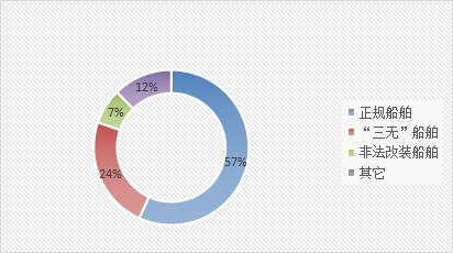 涉案81艘船舶中,正规船舶46艘,占比57%;“三无”船舶19艘,占比24%;非法改装或套用船名的船舶6艘,占比7%。另外还有6艘疑似正规船舶仍在鉴定中,其他尚不确定的船舶有4艘。对于正规船舶,经发还或者拍(变)卖后,可以依法营运;“三无”船舶则应当没收拆解,但“三无”船舶既涉及鉴定认定问题,也往往涉及权利人不明问题,影响处置程序和效率。