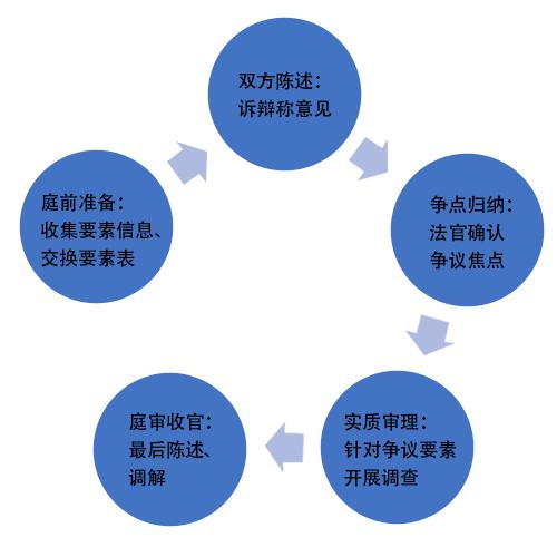 由此,要素式庭审可以更加高效地进行:在双方简要陈述各自的诉辩意见之后,法官即可结合案件要素事实确认本案的无争议要素,比如,原告的行权资格等,同时可以归纳出争议要素暨本案的争议焦点。庭审可以采取将法庭调查与法庭辩论合并的方式,由双方围绕争议要素举证、质证和辩论。当事人最后陈述后,若调解不成,则可以及时对案件作出裁判。
