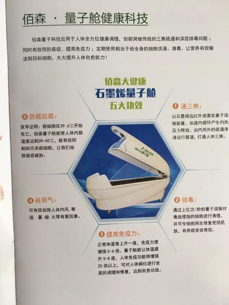 当事人利用宣传册、微信公众号发布广告,推广产品佰森石墨烯量子养生舱,宣称该产品能"防癌抗癌""远离癌症、慢性病、心脑血管重疾、心机梗塞、肝肾衰竭、糖尿病、高血压、痛风""慢病快治",使用医疗用语或者易使推销的商品与药品、医疗器械相混淆的用语,违反了《广告法》第十七条的规定;当事人在产品说明书中使用虚假的医疗器械注册证号,违反了《广告法》第四条的规定,深圳市市场稽查局作出行政处罚,责令当事人停止发布违法广告,在相应范围内消除影响,处以200000元罚款。