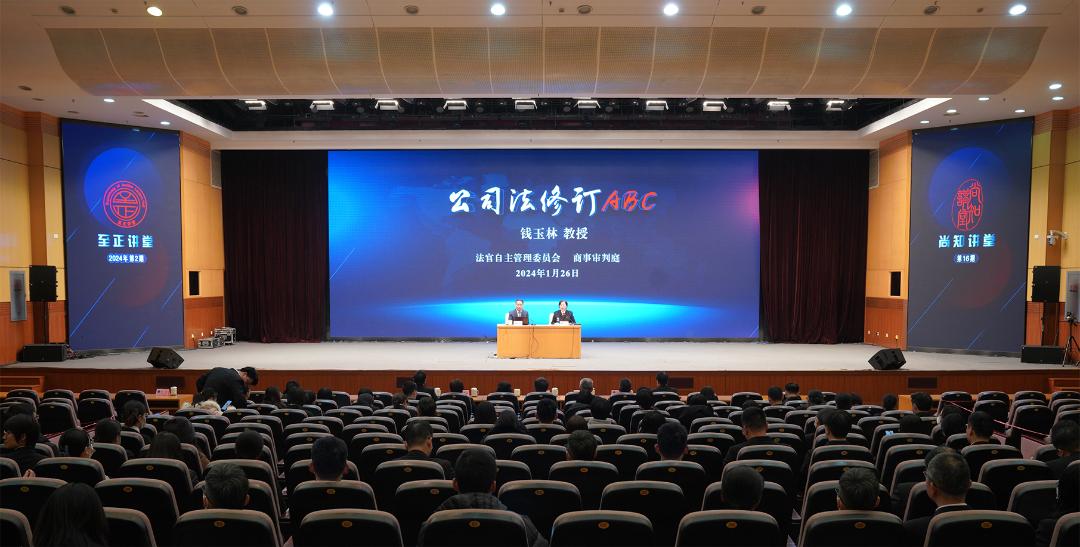 1月26日,上海二中院举办“至正·讲堂”暨“尚知讲堂”新公司法系列培训讲座,邀请华东政法大学经济法学院院长、博士生导师、中国法学会商法学研究会常务理事、上海市法学会商法学研究会副会长钱玉林教授以“公司法修订ABC”为题开展专题讲座。