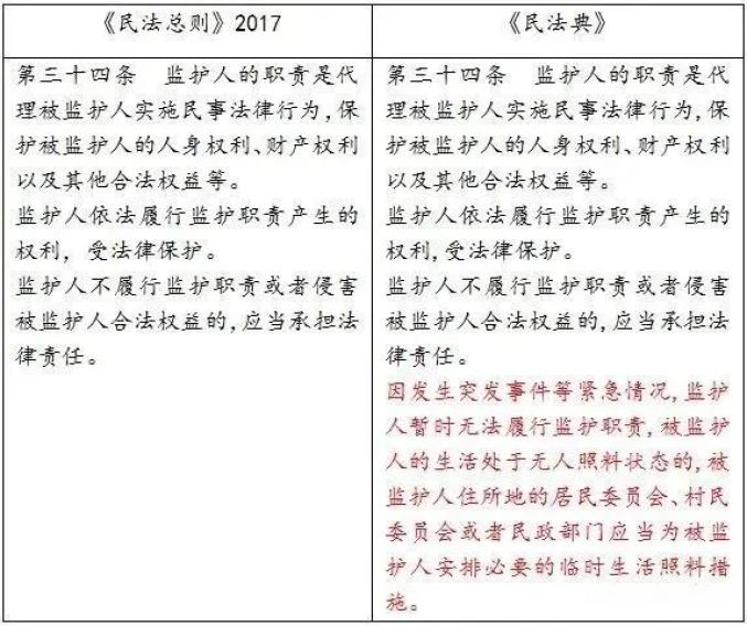 结合此次疫情防控工作,民法典对监护制度作了进一步完善,规定因发生突发事件等紧急情况,监护人暂时无法履行监护职责,被监护人的生活处于无人照料状态的,被监护人住所地的居民委员会、村民委员会或者民政部门应当为被监护人安排必要的临时生活照料措施。