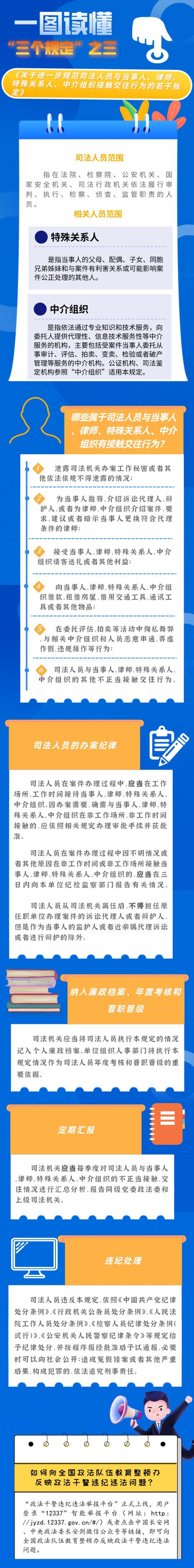 原标题:《一图读懂 | “三个规定”之《关于进一步规范司法人员与当事人、律师、特殊关系人、中介组织接触交往行为的若干规定》》