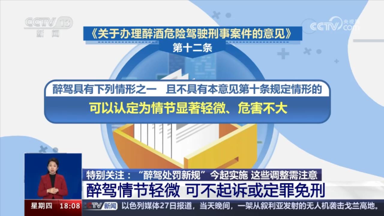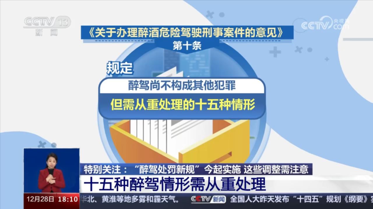 央视网消息:12月28日开始,《关于办理醉酒危险驾驶刑事案件的意见》,俗称“醉驾处罚新规”正式实施。此前,《意见》由最高人民法院、最高人民检察院、公安部、司法部联合发布。