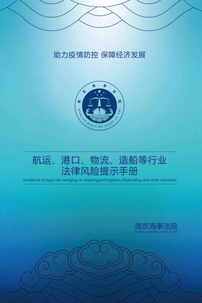 新冠肺炎疫情的爆发,短期内对全球贸易、航运市场等产生诸多不利影响,也给航运、港口、物流、造船等企业带来了风险和困扰。为更好地帮助航运、港口、物流、造船等企业防范法律风险,南京海事法院组织编写了《法律风险提示手册》,主要针对疫情防控期间以及企业复工复产中可能遇到的法律风险,作出提示建议,助力疫情防控,保障经济发展,为打赢疫情防控阻击战提供高质量海事司法保障。