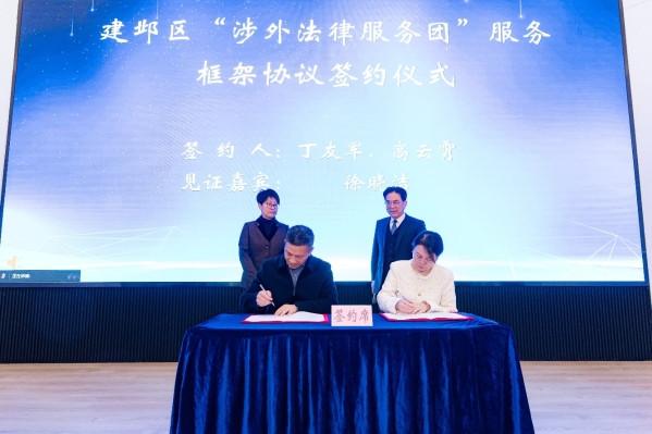 建邺区“涉外法律服务团”与“长三角企业出海服务中心”正式签署《建邺区“涉外法律服务团”服务框架协议》,通过整合法律与商贸资源,把高端法律服务送到涉外企业家门口,助力企业“出海莫愁”。此次框架协议的签署标志着建邺区在长三角区域率先搭建“法律服务+商业贸易”深度融合平台,构建“法治+商务”双轮驱动服务生态,为外向型经济高质量发展注入新动能,切实推动实现建邺更高水平对外开放。