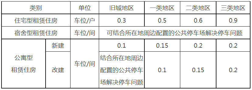 2 住宅型租赁住房和公寓型租赁住房配建机动车停车位中包含访客车位。