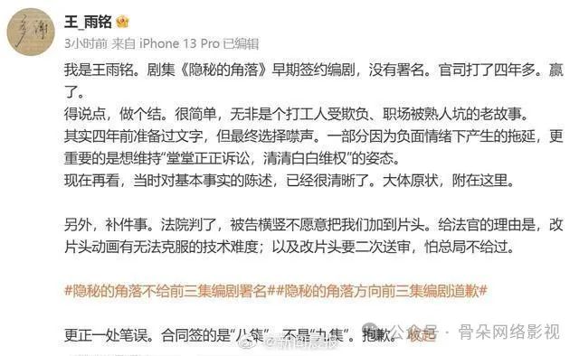 维权环境困难,小编剧们也将社媒公开发声视为一种有效途径。