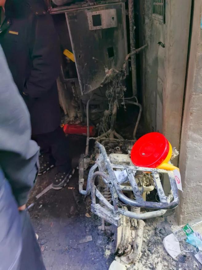 经调查走访得知,家住701室的李某接外孙回家后,把电动自行车的锂离子电池拿回家充电。不料放在书房充电的电池正冒黑烟,并伴有响声。李某立即将电池及充电器扔至7楼电梯厅处。不久后,电池着火发生爆炸。