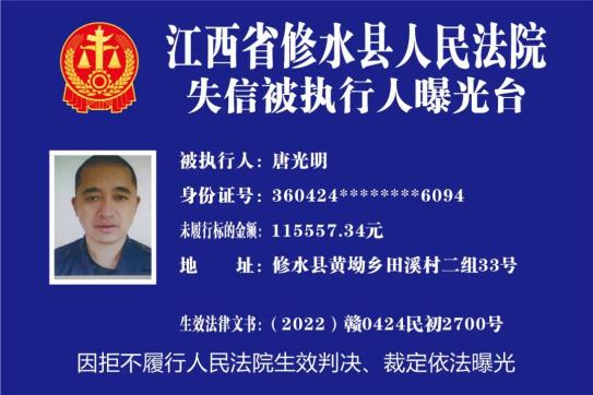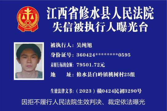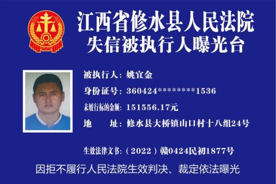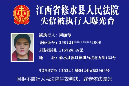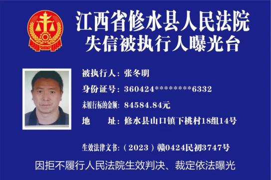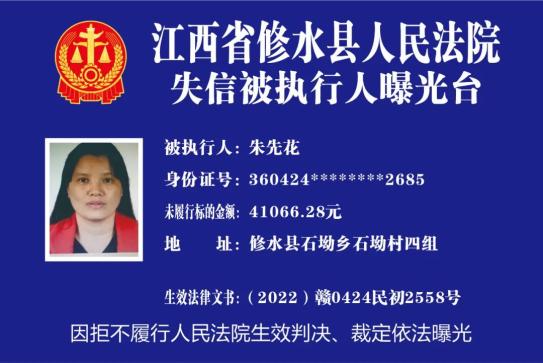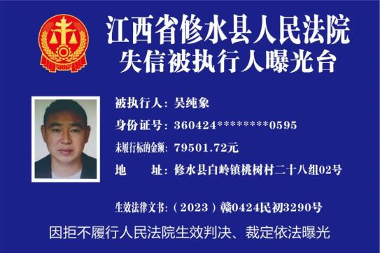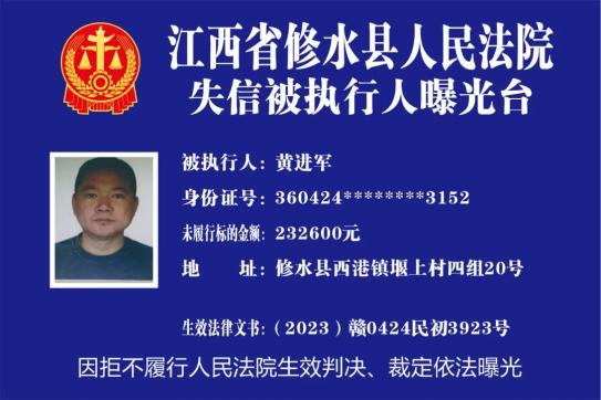 原标题:《持续曝光!修水公布2024年第二批失信被执行名单》