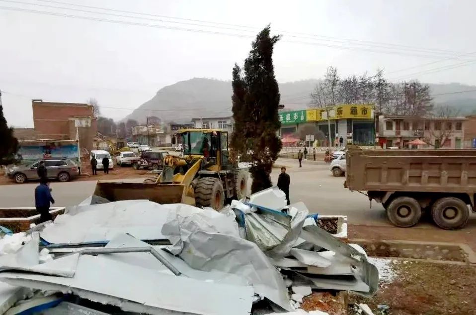 在寒天雪地中,玉井镇领导、干部齐动员,每天整装待发坚持执行工作任务,他们本着一颗“为民”的却不被民理解的心,爬梯子上房顶,扛木头搬东西,将一处处亟待整治的“乱点”逐一进行拆除,争取不漏拆一处影响村容村貌的乱点,持续推进拆违治乱工作,同时门头牌匾整治工作也在继续进行中。