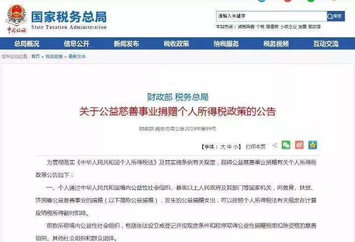 近日,财政部、税务总局发布《关于公益慈善事业捐赠个人所得税政策的公告》(以下简称《公告》)。