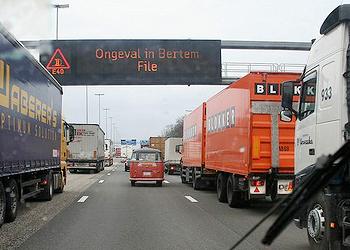 布鲁塞尔挤满车辆的高速公路。(摄影:Mike)