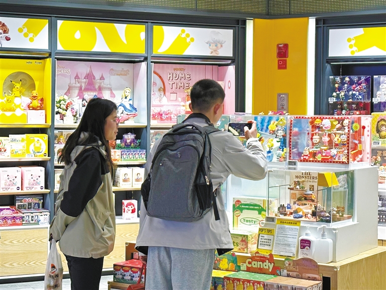 3月14日,在西安曲江大悦城的潮玩店内,盲盒产品吸引消费者选购。 记者 齐珂雨摄