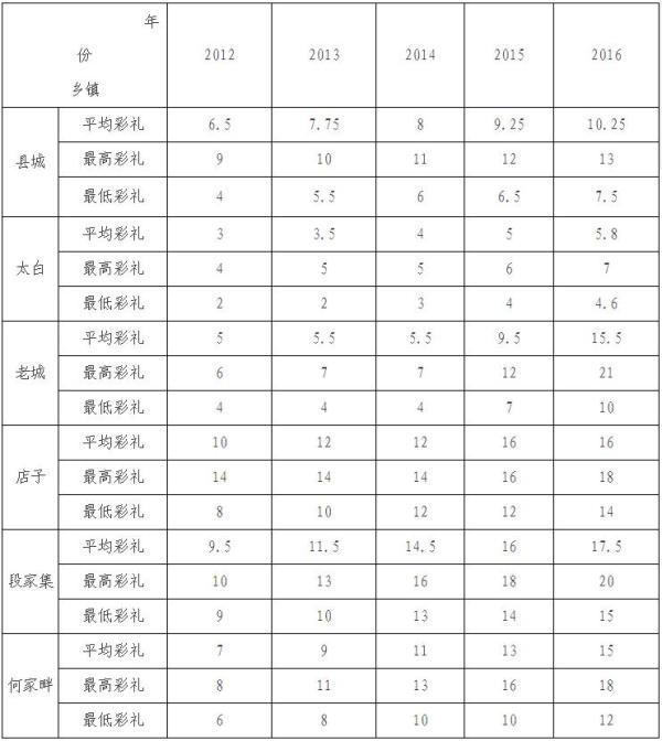 近五年合水县城及部分乡镇婚约彩礼情况统计(表1) 单位:万元