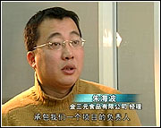 朱海波:我们只是当他作为一个承包我们一个项目的负责人,承包给他,把百盛这块承包给他,由他来给我交承包费。你还是挂金三元经营,并不是挂着你的那个牌子经营,你做不好,你砸了我“金三元”的牌子,一样道理。