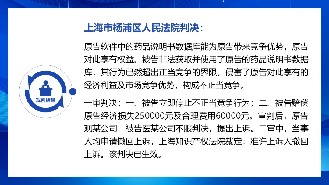 原告观某公司是“丁香园”旗下产品“用药助手”APP的运营方。该APP收录了数万种药品说明书,可帮助用户通过商品名、通用名、疾病名称等迅速找到说明书。原告作为应用程序“用药助手”的开发者,为制作该数据库付出了大量的人力、物力,并自2011年起对数据库不断更新、维护。
