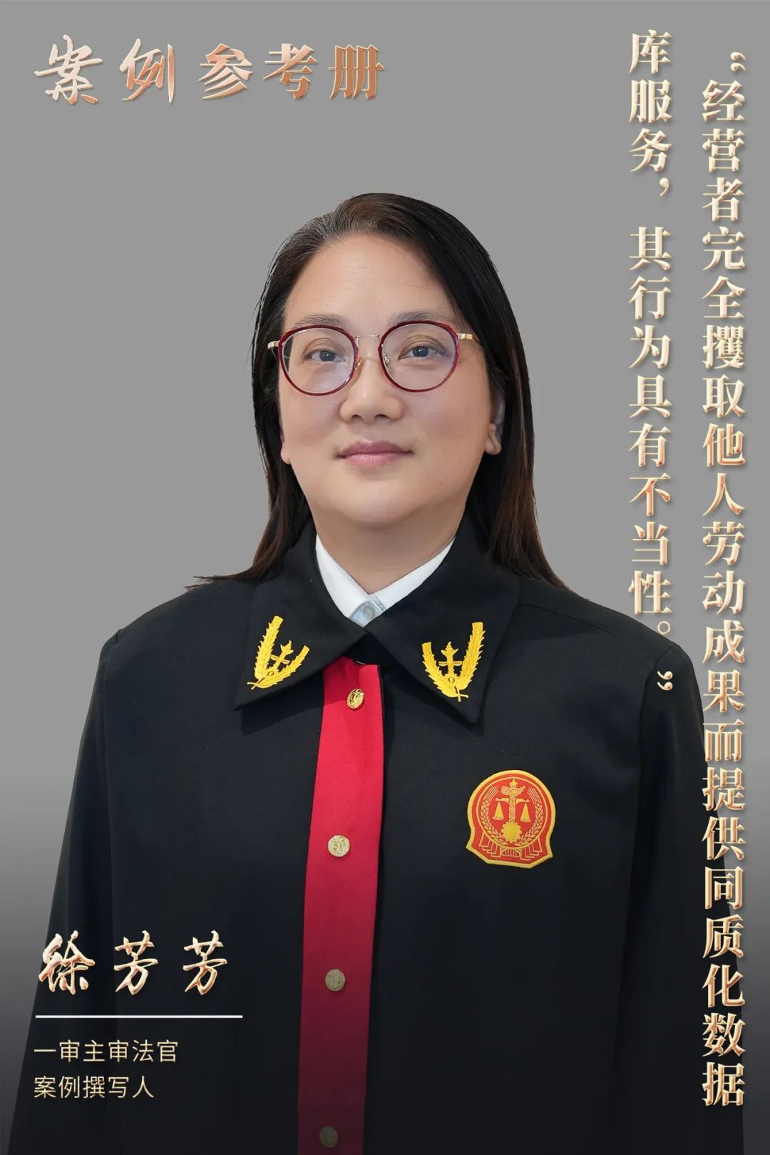 徐芳芳,上海市杨浦区人民法院三级高级法官,撰写的案例获评“中国法院50件典型知识产权案例”、上海法院年度精品案例等。