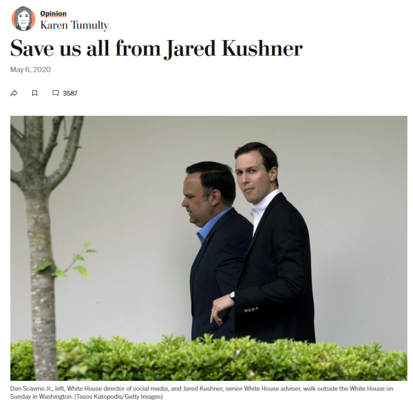 当时《华盛顿邮报》以“从库什纳手里救救我们”为题发表评论