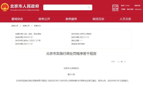 原标题:《明年1月1日起施行!《北京市实施行政处罚程序若干规定》(全文)》