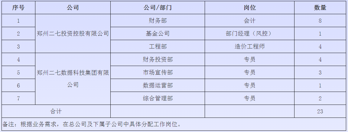 附件:《2023年郑州市二七区区属国有企业公开招聘岗位明细表》