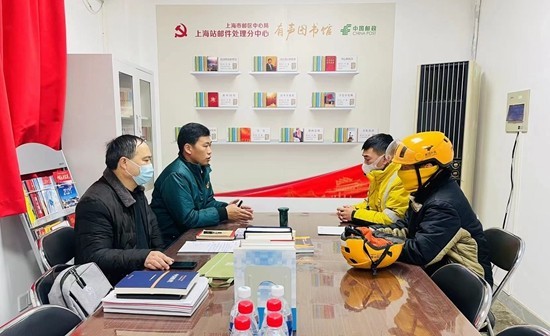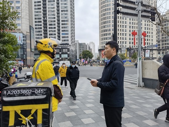 2022年,柴闪闪(右)作为上海市人大代表在上海南站广场门口听取“外卖小哥”的诉求。受访者供图