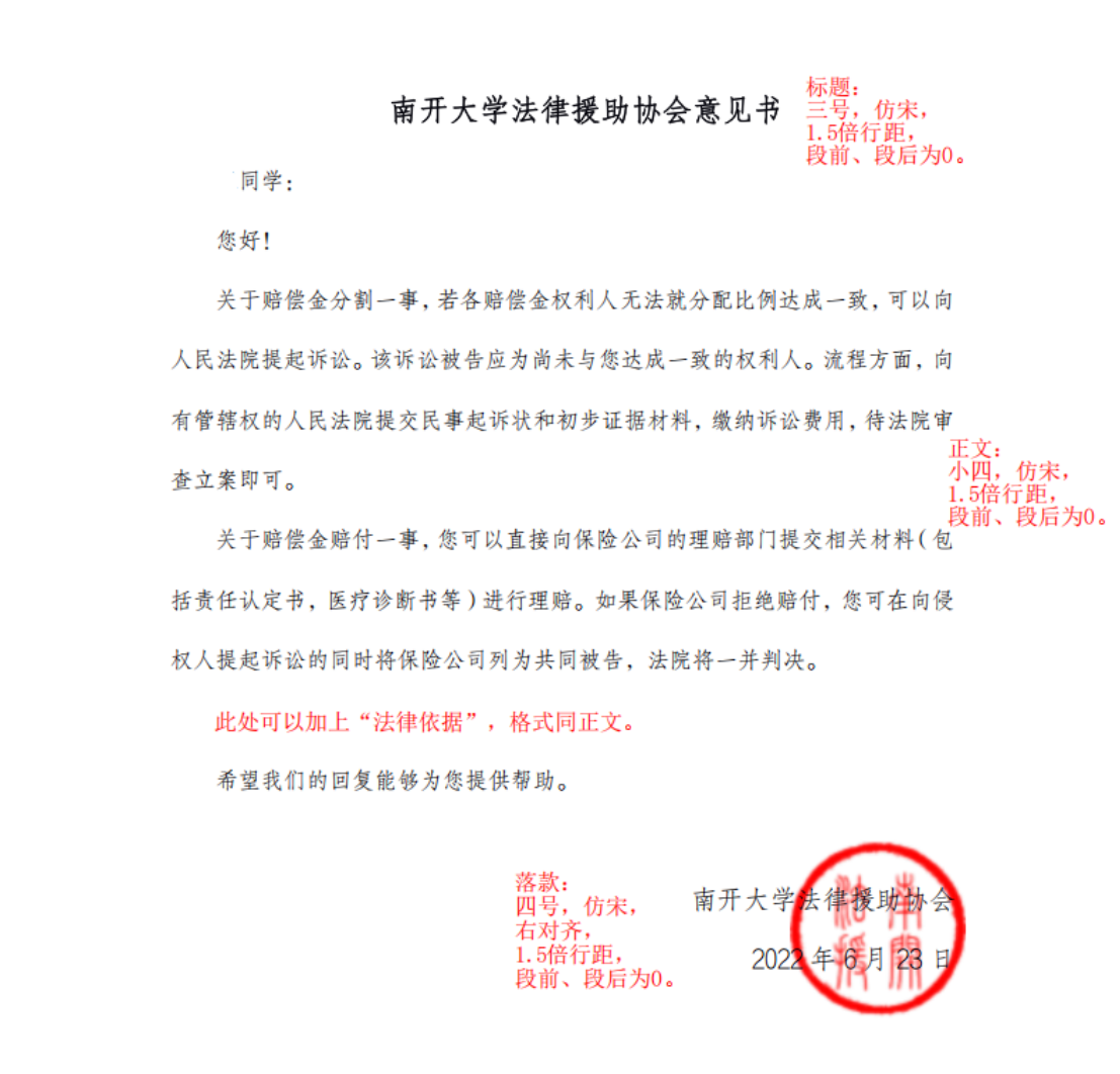 团队曾为一位因交通意外失去母亲的青少年轮流守候在邮箱旁,进行前后4次完整的意见反馈。也曾为一位被恶意拖欠工资十余万的企业职员组建答疑团队,努力为其争取维持生计的基本保障。这样的故事还有很多,协会只为把志愿精神和南开温度通过一封封意见书,传递给每一位求助者。