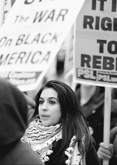 美国华盛顿、纽约、芝加哥和休斯敦等地都曾爆发大规模游行,抗议种族歧视和司法不公。图为2015年1月,近百名示威者在华盛顿市中心游行示威并阻断交通,抗议弗格森枪击案等事件背后的种族歧视和司法不公。