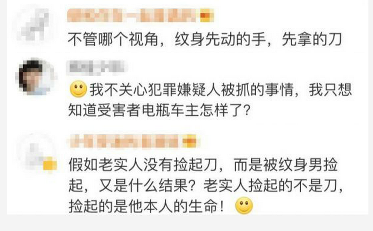 在接下来的三天时间里,发酵的舆论场还曝出了有关当事人的更多细节:例如36岁的龙哥那乌压压的文身,他几进几出、多次犯案的经历,以及他还曾因举报毒贩获得见义勇为奖的插曲;还有白衣电动车主所代表的“老实人”和他背后的生活,以及当时情况下险中求生、急不择路的反击……