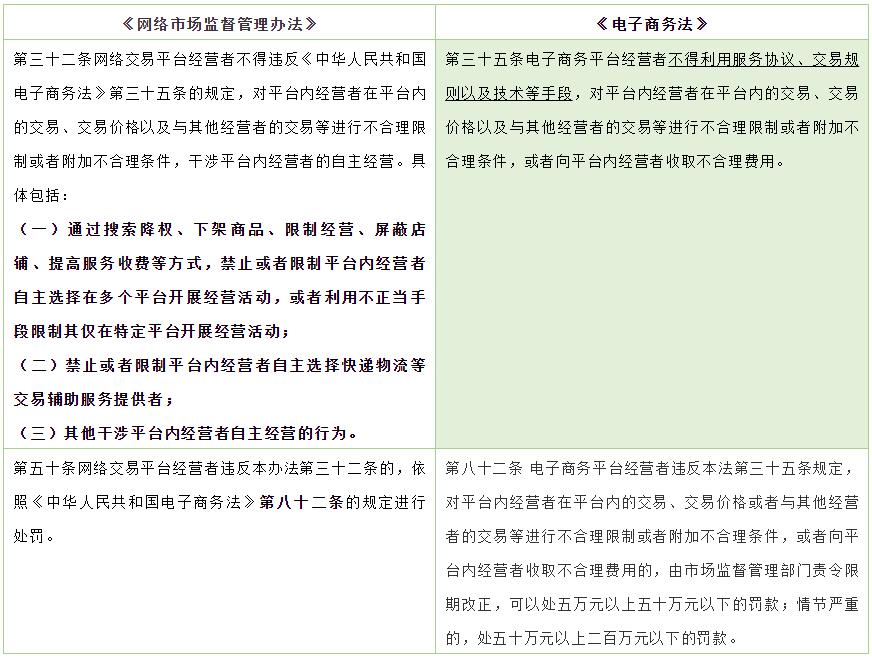 近年来,我国平台经济领域“强制商家二选一”等案件频发,市场监管总局于2020年底依法对阿里巴巴实施“二选一”等涉嫌垄断行为立案调查,2021年2月唯品会因利用技术手段影响平台内经营者正常运营被罚300万等案例均多次引发关注。《办法》在《电子商务法》第三十五条的基础上,将“进行不合理限制或者附加不合理条件”进行细化,对市场监管部门查处相应违法行为提供更具操作性的指引。