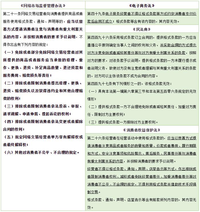 《电子商务法》要求经营者不得以格式条款等方式约定消费者支付价款后合同不成立,《民法典》《消费者权益保护法》亦对格式条款的使用作出一定限制。《办法》在前述基础上,结合网络交易特点,细化格式条款禁止性内容,更有利于保护网络交易消费者合法权益。