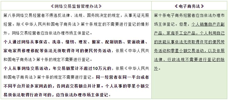 《办法》以不完全列举的方式将《电子商务法》第十条规定的无需办理市场主体登记的“便民劳务活动”细化为“通过网络从事保洁、洗涤、缝纫、理发、搬家、配制钥匙、管道疏通、家电家具修理修配等依法无须取得许可的便民劳务活动”,使得网络市场主体登记规则的适用更具指导性。