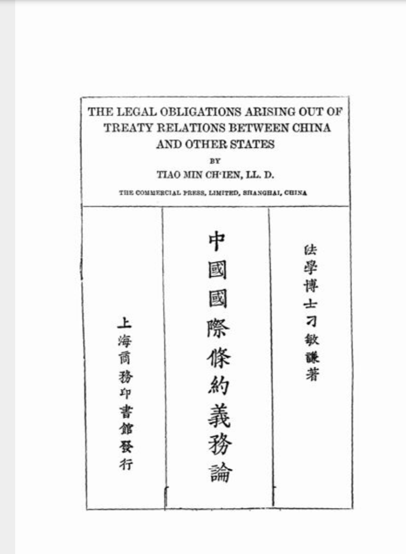刁敏谦著《中国国条约义务论》是有关不平等条约的重要论著