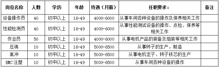 美的集团威灵(芜湖)电机制造有限公司:1999年11月注册成立,位于安徽省芜湖市经济开发区,公司共有2800余名员工,是国内规模较大的电机生产企业,主要产品有汽车电机、空调用电机、抽油烟机电机等。目前威灵电机在电机行业占据着重要位置,对电机行业的发展有着杰出的贡献。现公司旺季来临,且直流电机新项目上线,急需大量人才,待遇从优,发展多多。