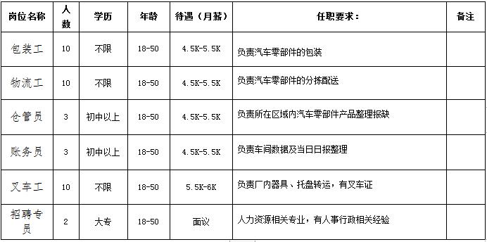 我司是一家中外合资企业,公司位于经济技术开发区桥北工业园永丰路,是专业研发和生产汽车门铰链、门把手、限位器的汽车零部件制造公司。公司目前主要客户为一汽丰田、北京汽车、奇瑞汽车、上汽集团、日产(出口)和雷诺(出口)等国内外各大品牌汽车主机厂。现因公司经营发展需要,诚聘以下岗位: