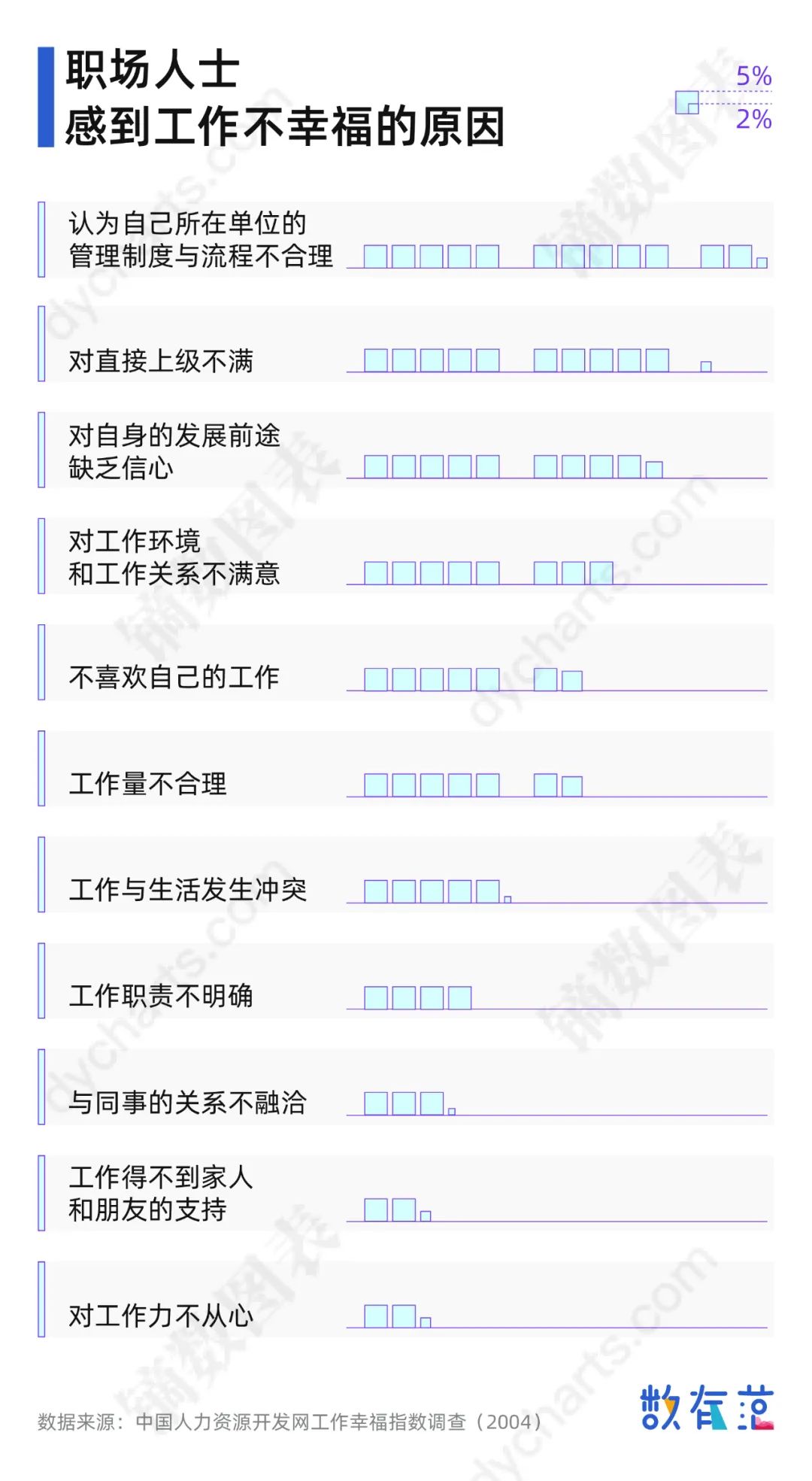 早在十几年前,中国人力资源开发网牵头在全国范围内开展了一次“工作幸福指数调查”,数据显示,中国职场人士的的工作幸福状况不容乐观,幸福的工作者仅占被调查者的9.79%。