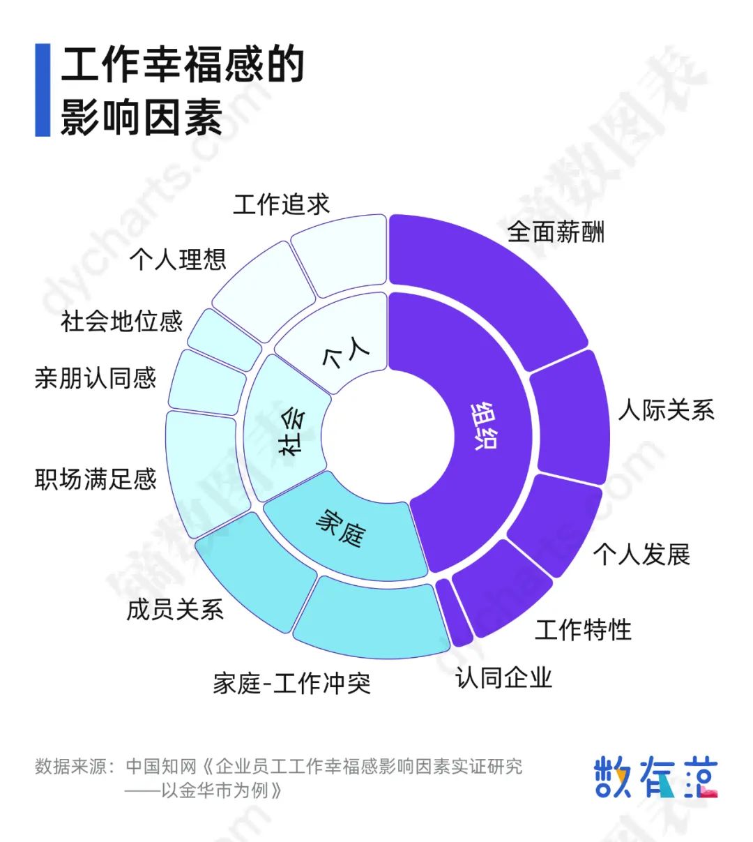 在一项关于企业员工工作幸福感影响因素的实证研究中,有学者将工作幸福感的影响指标分为个人因素、组织因素、家庭因素和社会因素。
