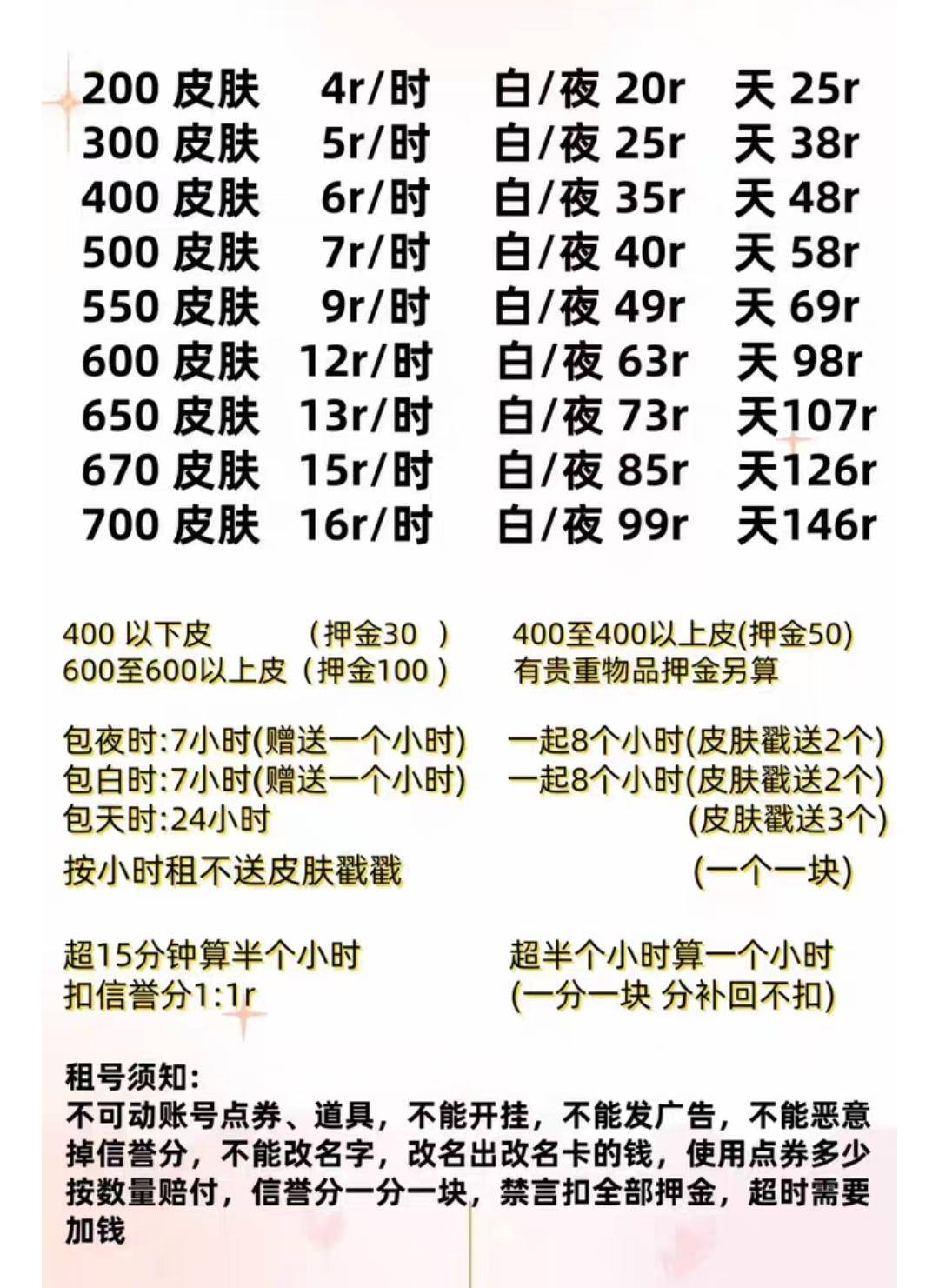 实际上,类似的交易行为并不少见,记者在某平台上看到有很多出租游戏账号的帖子。比如说某款热门游戏,账号是2小时起租,根据皮肤的数量,价格不等,同时需要支付一定的押金。出租方也强调,不可动账号点券、道具,不能开挂……