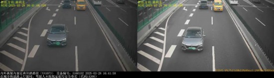 ▲2025年3月29日11时32分,号牌为沪AB65***的小型轿车在南北高架西侧近兴业路路段,实施了“在城市快速路上行驶时,驾驶人未按规定使用安全带的”违法行为。