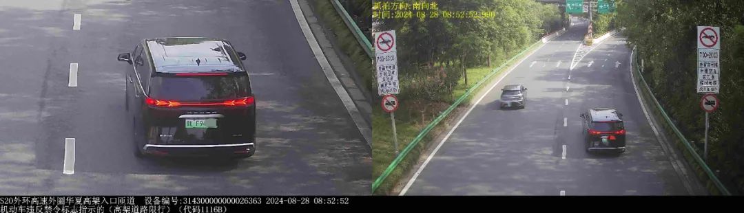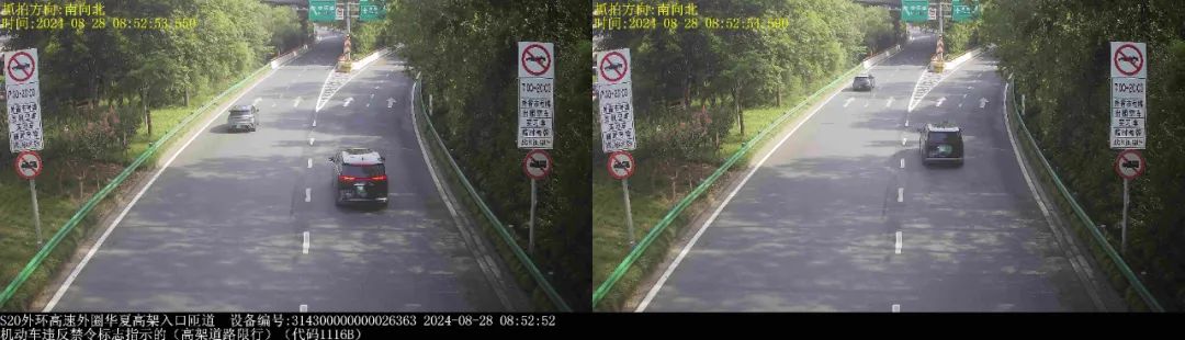▲2024年8月28日8时52分,号牌为晋LF94***的小型普通客车在S20外环高速外圈华夏高架入口匝道,实施了“机动车违反禁令标志指示的(高架道路限行)”违法行为。