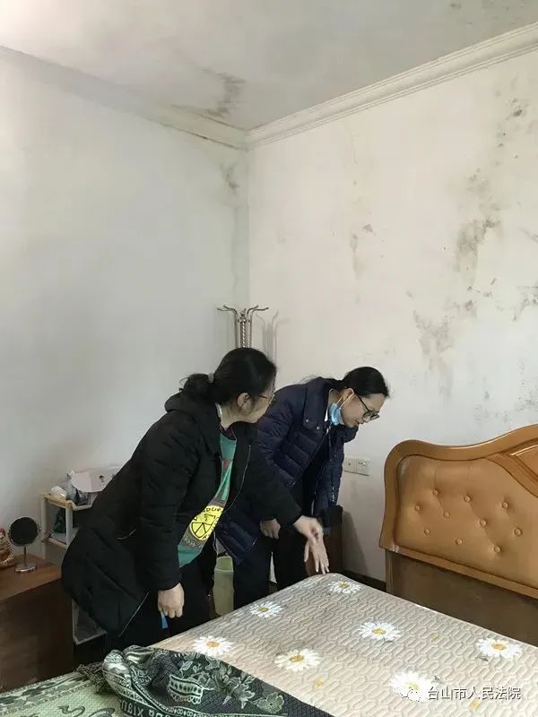 被告李某长期在外务工甚少返台,通过法院干警多次的沟通工作,李某才抽空从外地返台解决纠纷。日前,台山法院的劳法官连同社区工作人员、小区物业工作人员一同到原、被告的房屋,在双方到场的情况下对现场进行勘查,通过勘查分析,该楼房属于房屋老化导致的渗漏。