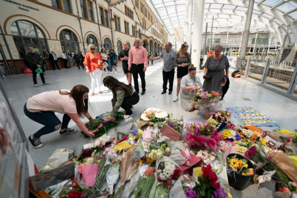 2020年5月22日,在英国曼彻斯特,人们悼念曼彻斯特恐怖袭击中的遇难者。当日是曼彻斯特恐怖袭击三周年纪念日。2017年5月22日,英国曼彻斯特体育馆发生自杀式爆炸袭击,造成至少22人死亡。新华社发